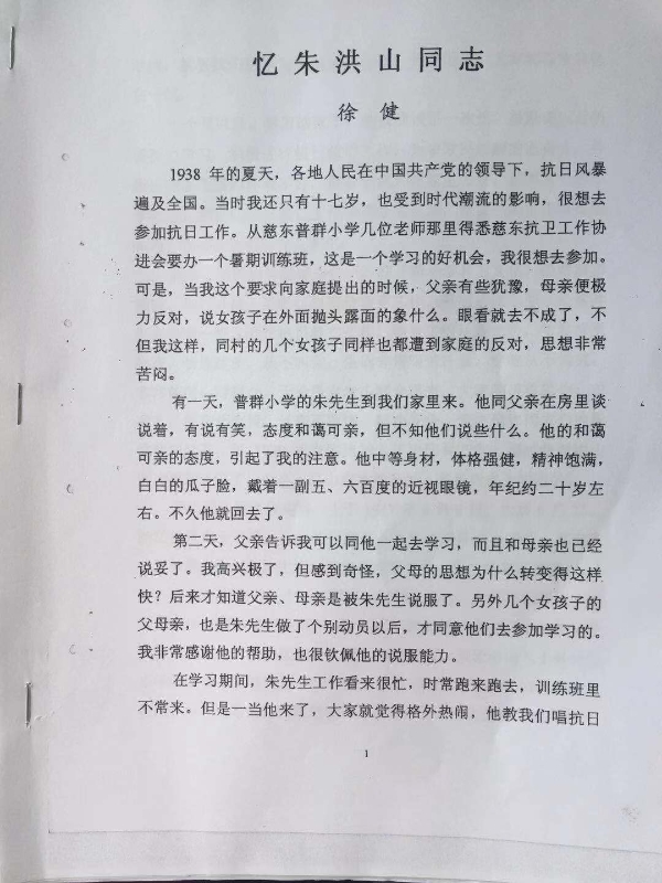 抗日戰爭后期直至解放戰爭初的隱蔽堅持時期,朱洪山同志在慈南地區堅持斗爭,與四明山人民有著血肉相連的關系。“人生的真諦就是為人民服務,為民族解放,為人類求幸福。”這一份年少之時立下的誓言,成為了朱洪山一生的信條,同樣也被當地的群眾永遠記在了心上。