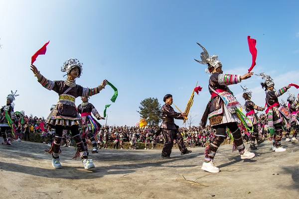 大寒一到,年味漸濃。貴州省從江縣堯等村的苗族群眾身著民族盛裝,吹奏蘆笙、跳蘆笙舞,迎接遠道而來的客人們。(貴州省黔東南州從江縣紀委監委供 吳德軍 攝)