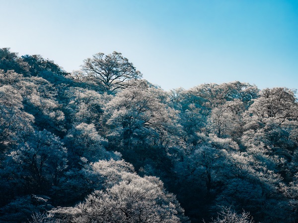 大寒時節,在廣西壯族自治區灌陽縣的雷王殿山上,樹木身披潔白的冰霜鎧甲,陽光灑落,盡顯大自然的鬼斧神工與冬日之美。(廣西壯族自治區灌陽縣紀委監委供 陸亮亮 攝)